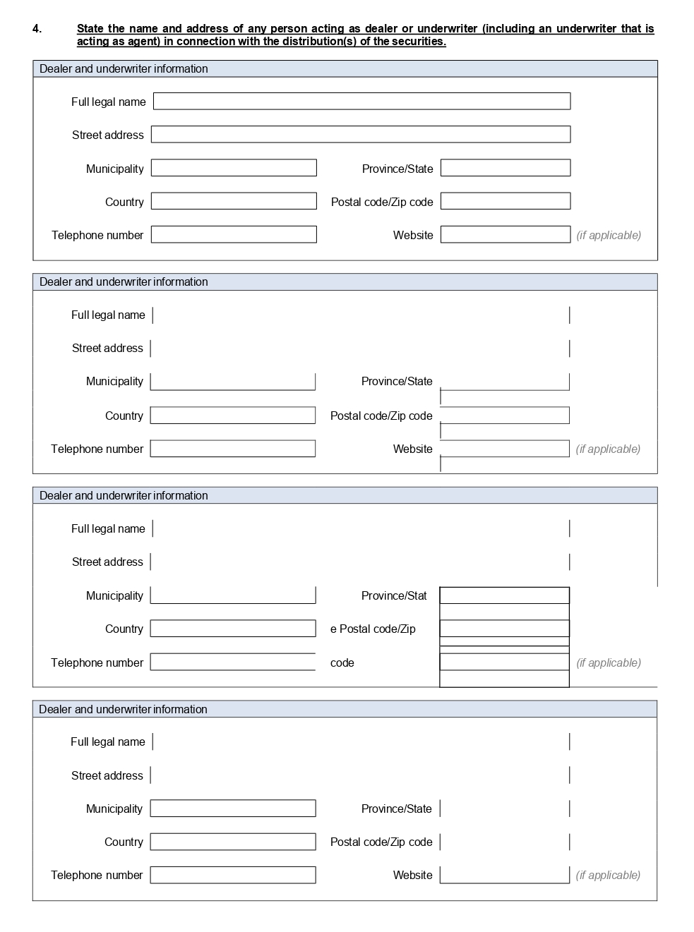 | 3. | Distributions by more than one issuer of a single security: If two or more issuers distributed a single security, provide the full legal name(s) of the co-issuer(s) in section 1c) other than the issuer named in section 1a). |