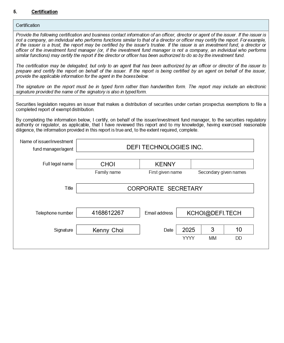 | 1. | An issuer that is required to complete this Form must do so through the online e-form available at http://www.osc.gov.on.ca. |