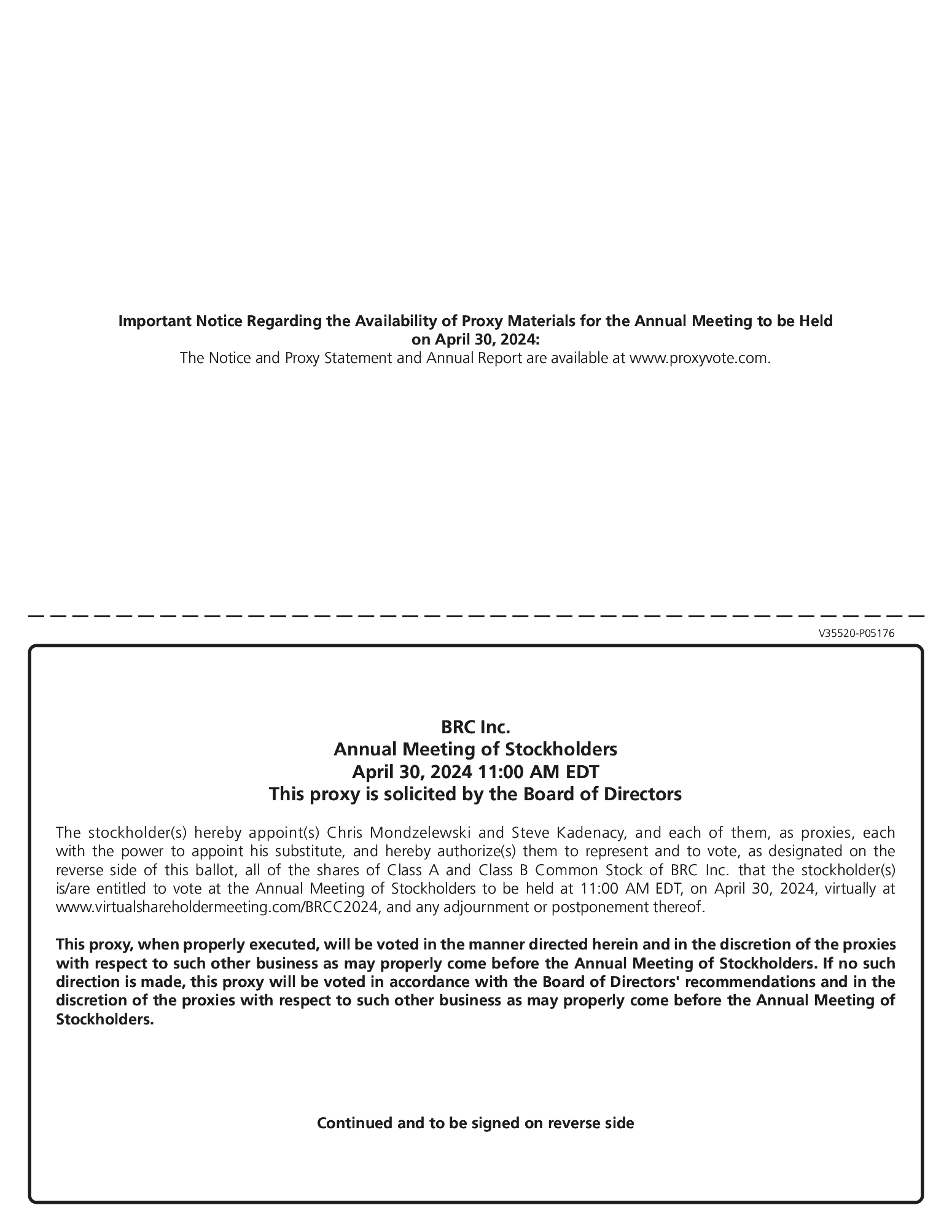 | | | Online at: www.virtualshareholdermeeting.com/BRCC2024 |