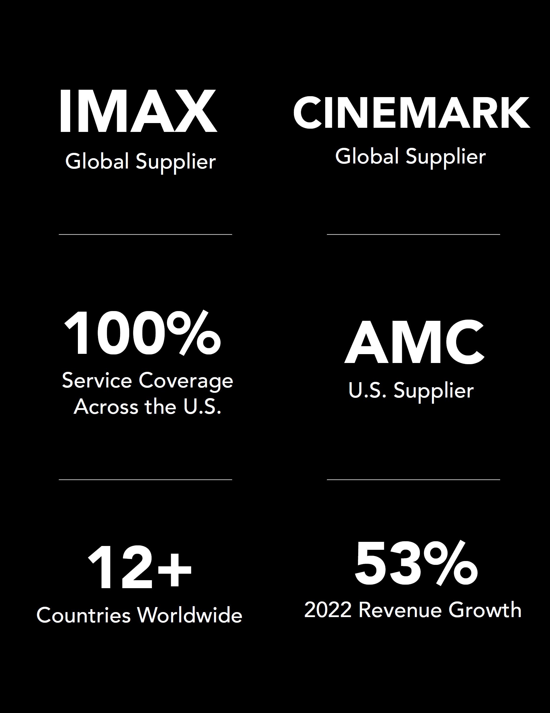 | ● | Upgrade Cycle from Xenon to Laser Projection — We believe the transition from xenon projection to laser protection in the cinema exhibition industry will accelerate and continue over the next decade. Several exhibitors have publicly discussed plans to upgrade to an all-laser projection strategy, notably Cinemark and IMAX, to further improve the quality of the theatrical experience. In addition, in April 2022, AMC announced an agreement with Cinionic, Inc. to install Barco laser projectors in 3,500 of its U.S. auditoriums through 2026. We expect this upgrade cycle to drive increased demand for screen replacement as well as for our services to de-install, install and upgrade new and existing projection equipment. | |