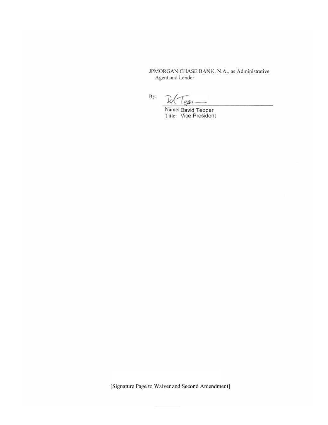 JPMORGAN CHASE BANK, N.A., as Administrative Agent and Lender By: Name: David Tepper Title: Vice President [Signature Page to Waiver and Second Amendment]