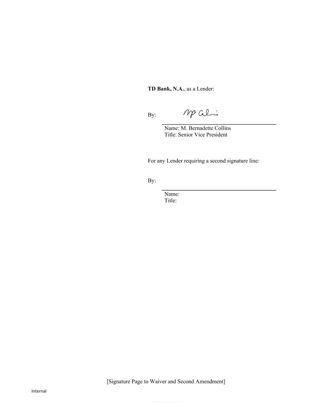 [Signature Page to Waiver and Second Amendment] Internal TD Bank, N.A., as a Lender: By: Name: M. Bernadette Collins Title: Senior Vice President For any Lender requiring a second signature line: By: Name: Title: