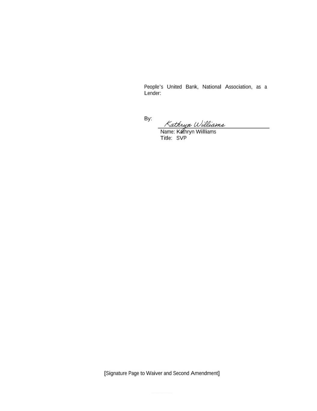 [Signature Page to Waiver and Second Amendment] People’s United Bank, National Association, as a Lender: By: Name: Kathryn Williams Title: SVP