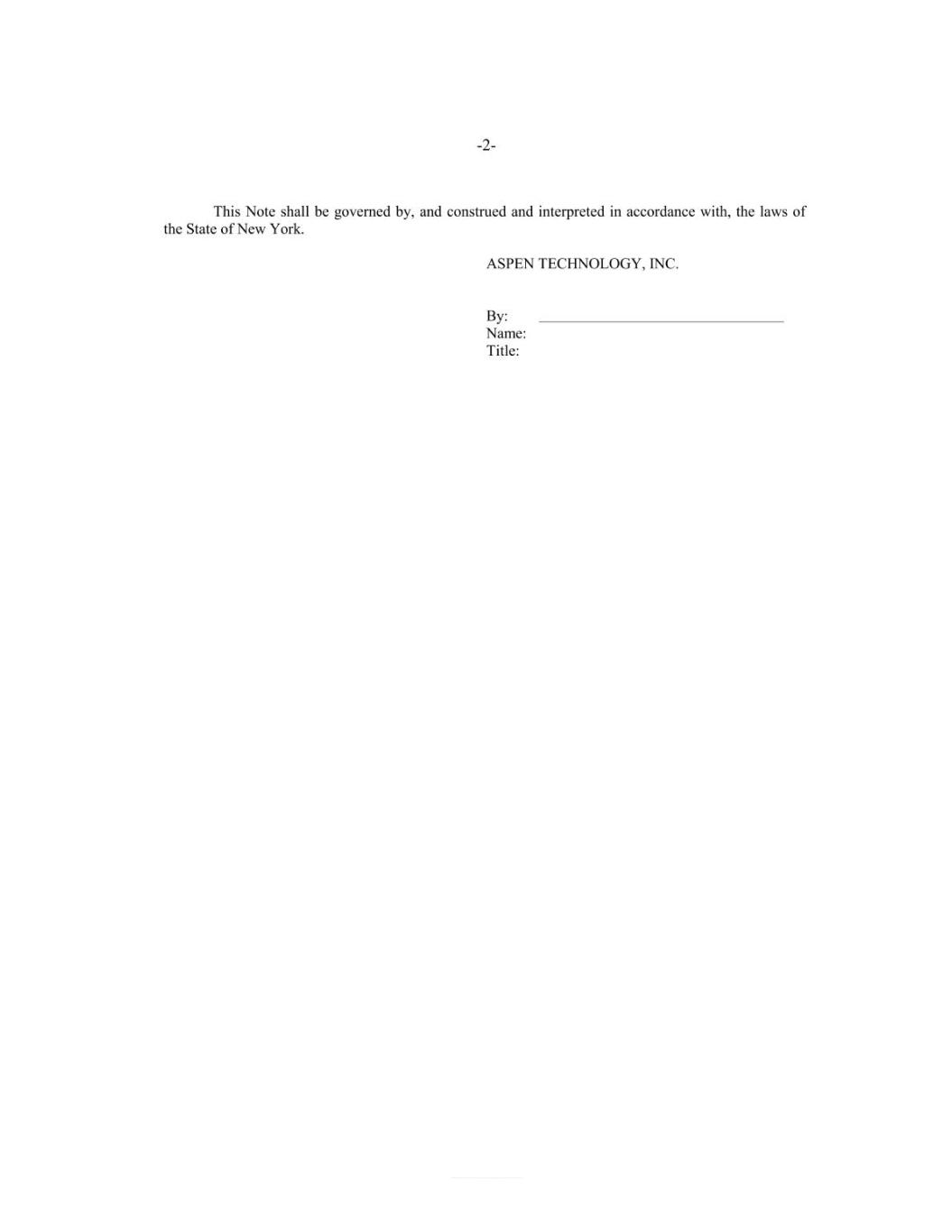 -2- ASPEN TECHNOLOGY, INC. By: Name: Title: This Note shall be governed by, and construed and interpreted in accordance with, the laws of the State of New York.