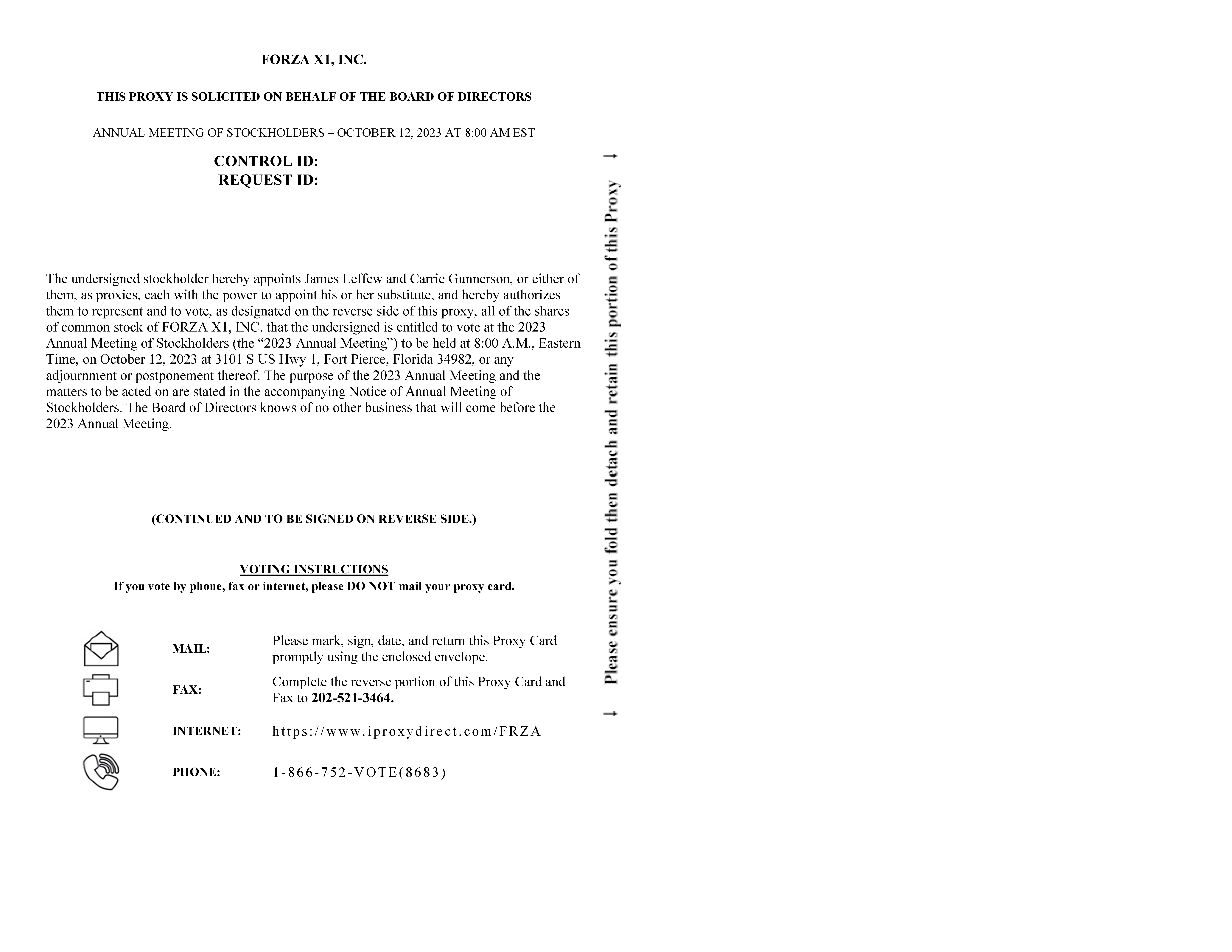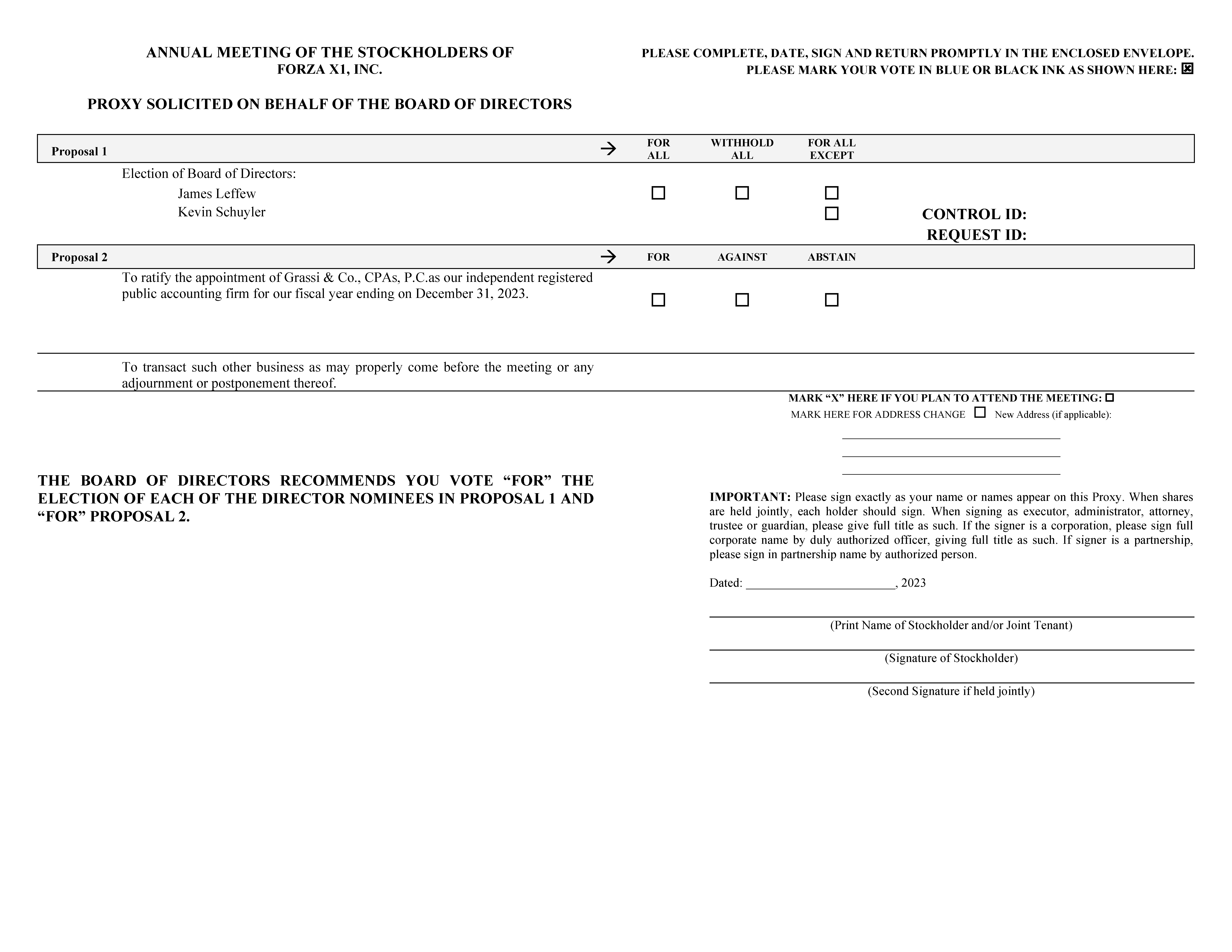 FORZA X1, INC.