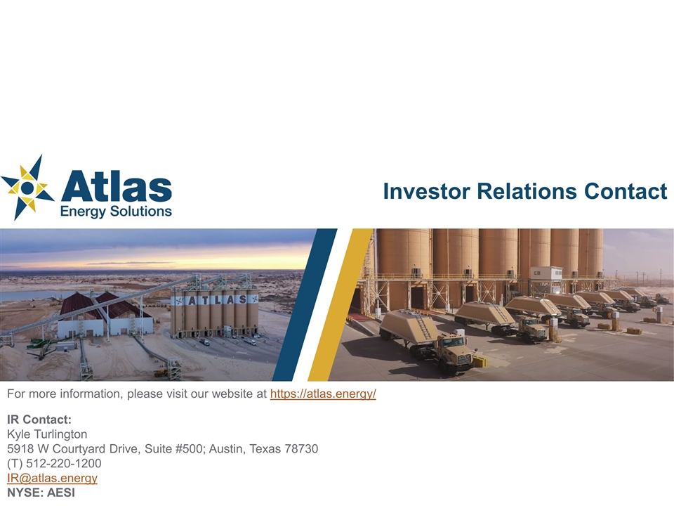 Investor Relations Contact For more information, please visit our website at https://atlas.energy/ IR Contact: Kyle Turlington 5918 W Courtyard Drive, Suite #500; Austin, Texas 78730 (T) 512-220-1200 IR@atlas.energy NYSE: AESI