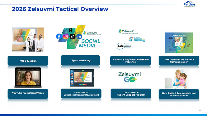 14 2026 Zelsuvmi Tactical Overview KOL Education Digital Marketing National & Regional Conference Presence CRM Platform: Education & Communication YouTube Promotional Video Live & Virtual Educational Speaker Development New Patient Testimonials and Advertisements ZELSUVMI GO Patient Support Program