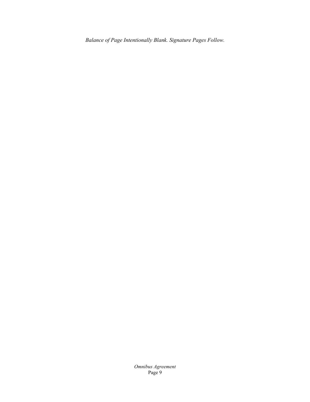 Omnibus Agreement Page 9 Balance of Page Intentionally Blank. Signature Pages Follow.
