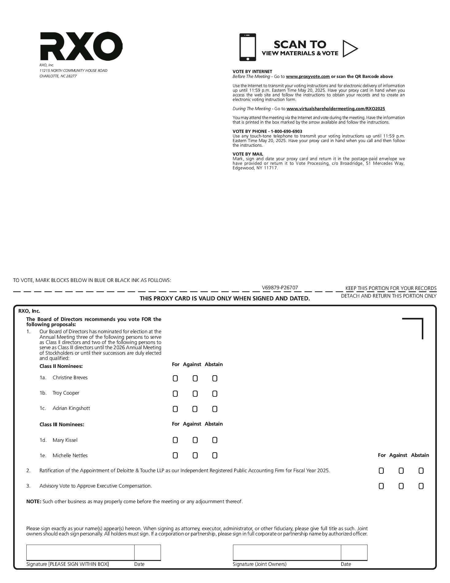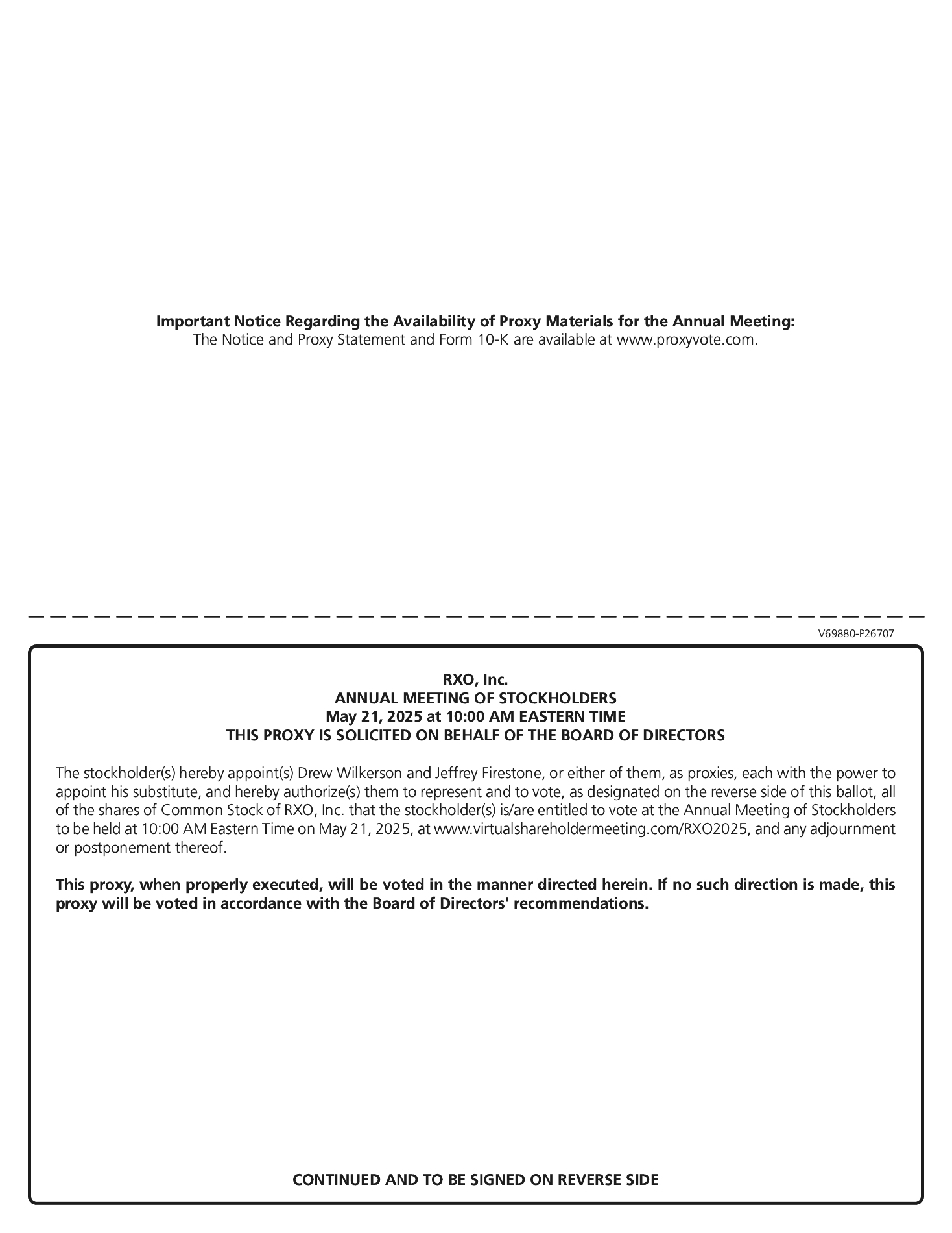 Detailed information for submitting stockholder proposals or nominations of director candidates will be provided upon written request sent to: Jeffrey Firestone, Corporate Secretary, RXO, Inc., 11215 North Community House Road, Charlotte, North Carolina 28277.
