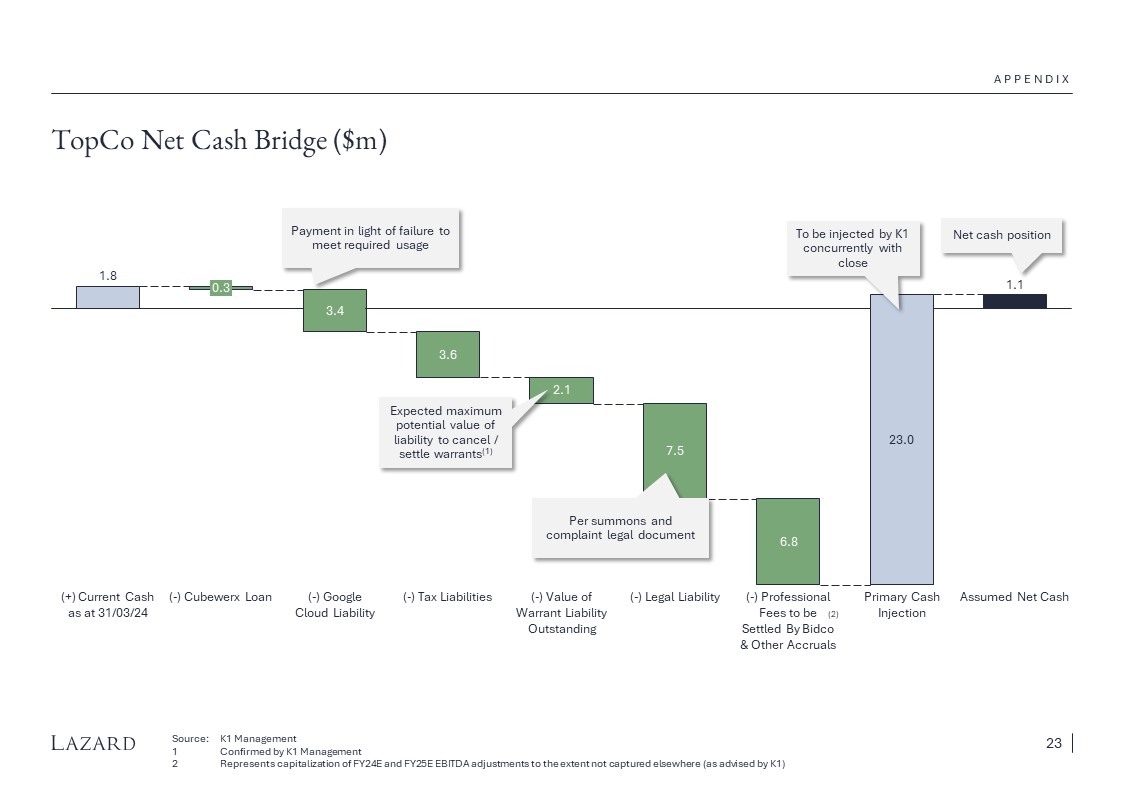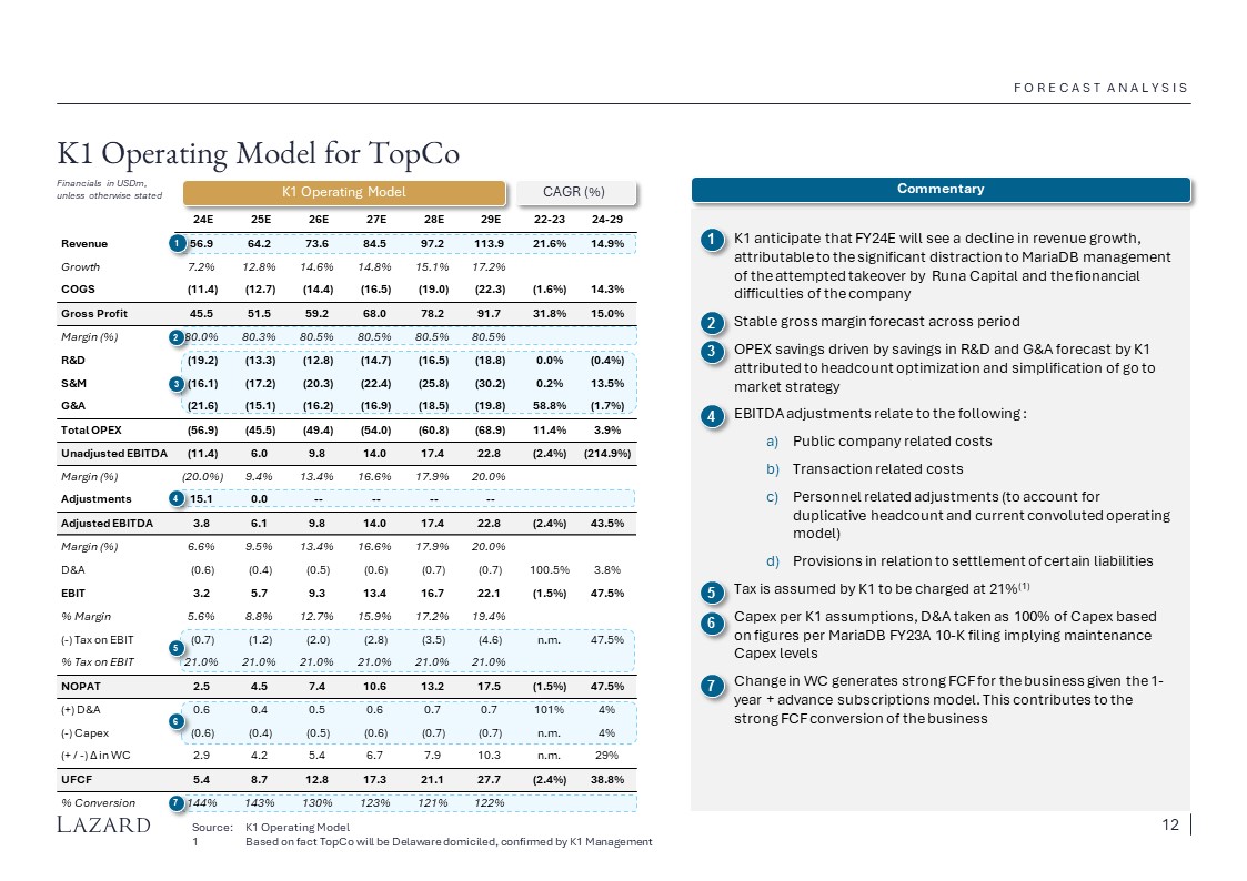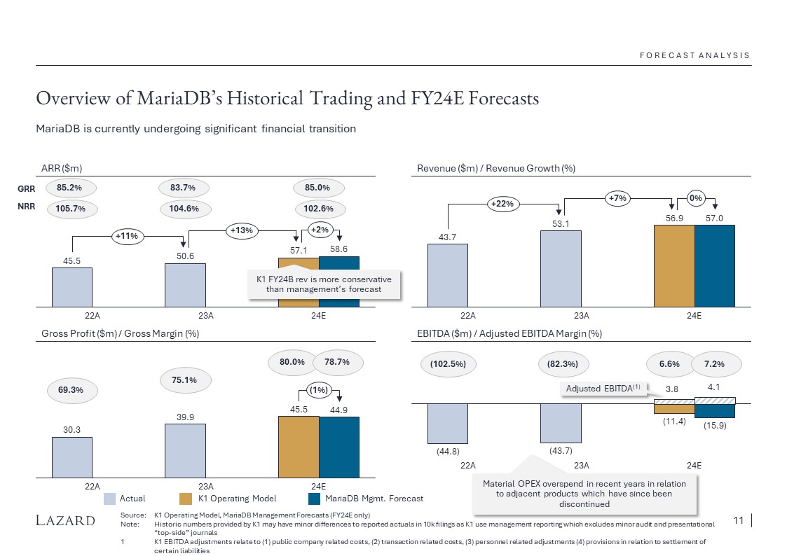 and Implied TopCo equity value is higher than those of MariaDB owing to a series of adjustments by K1 to reflect their entry price including, amongst other things, primary cash injection and the purchase of the company debt at a premium