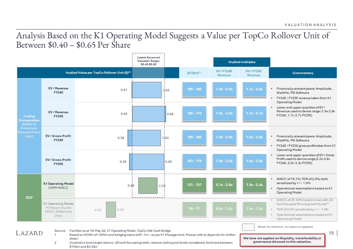 value the Unlisted Unit Alternative The fully diluted share count of TopCo is ~265m shares per K1, representing an implied TopCo equity value of ~$145.7 million at a $0.55 issue price per share in TopCo The fully diluted share count of TopCo