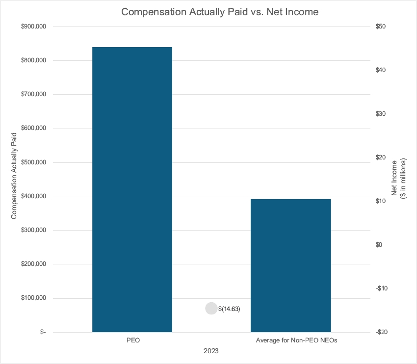 Fiscal Year(1) | | | Summary Compensation Table Total for PEO(2) | | | Compensation Actually Paid to PEO(2) | | | Average Summary Compensation Table Total for Non-PEO NEOs(3) | | | Average Compensation Actually Paid to Non- PEO NEOs(3) | | | Value of Initial Fixed $100 Investment Based On Total Stockholder Return (“TSR”)(4) | | | Net Loss(5) |