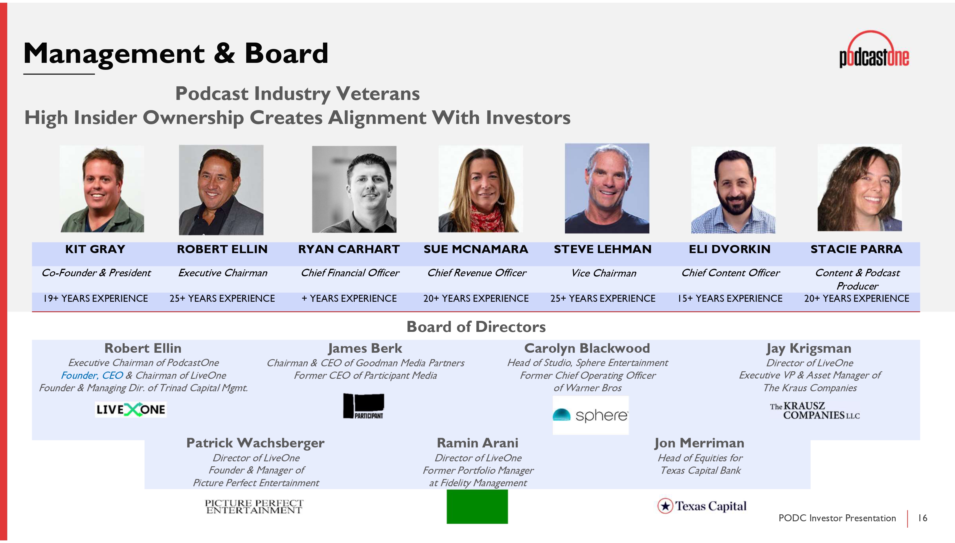 Investor Relations Carson Pascente PodcastOne carson@podcastone.com