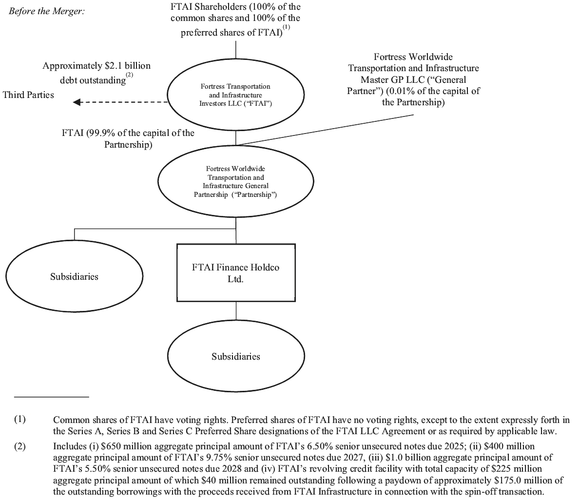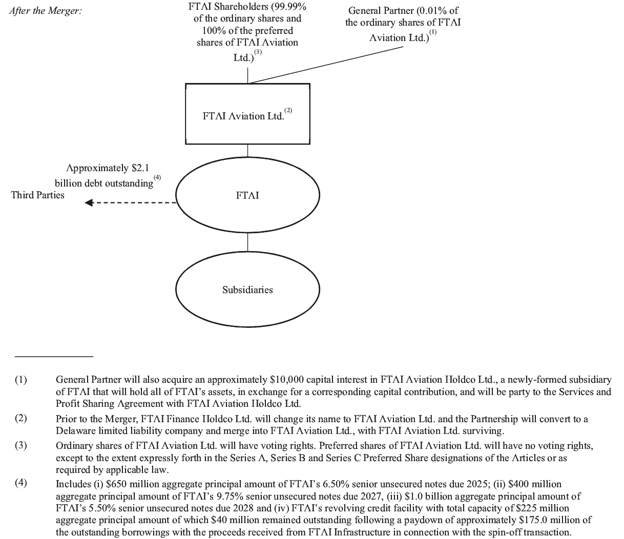 • | references herein to the “merger” are to the merger of Merger Sub with and into FTAI, with FTAI surviving the merger as a wholly-owned subsidiary of the Company, and with holders of FTAI common shares receiving newly issued ordinary shares of the Company and holders of FTAI Preferred Shares receiving newly issued preferred shares of the Company, as contemplated by the merger agreement; and |