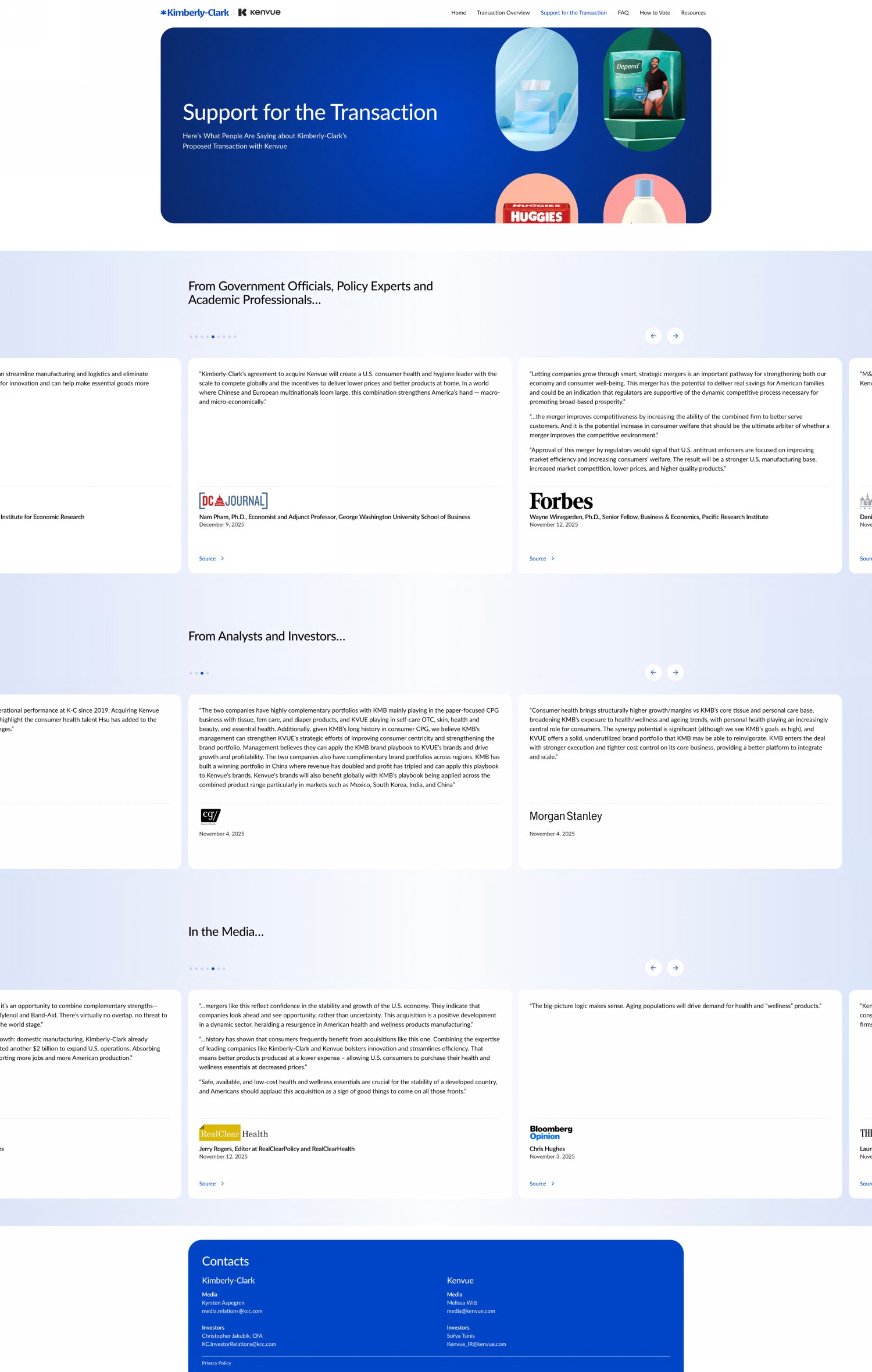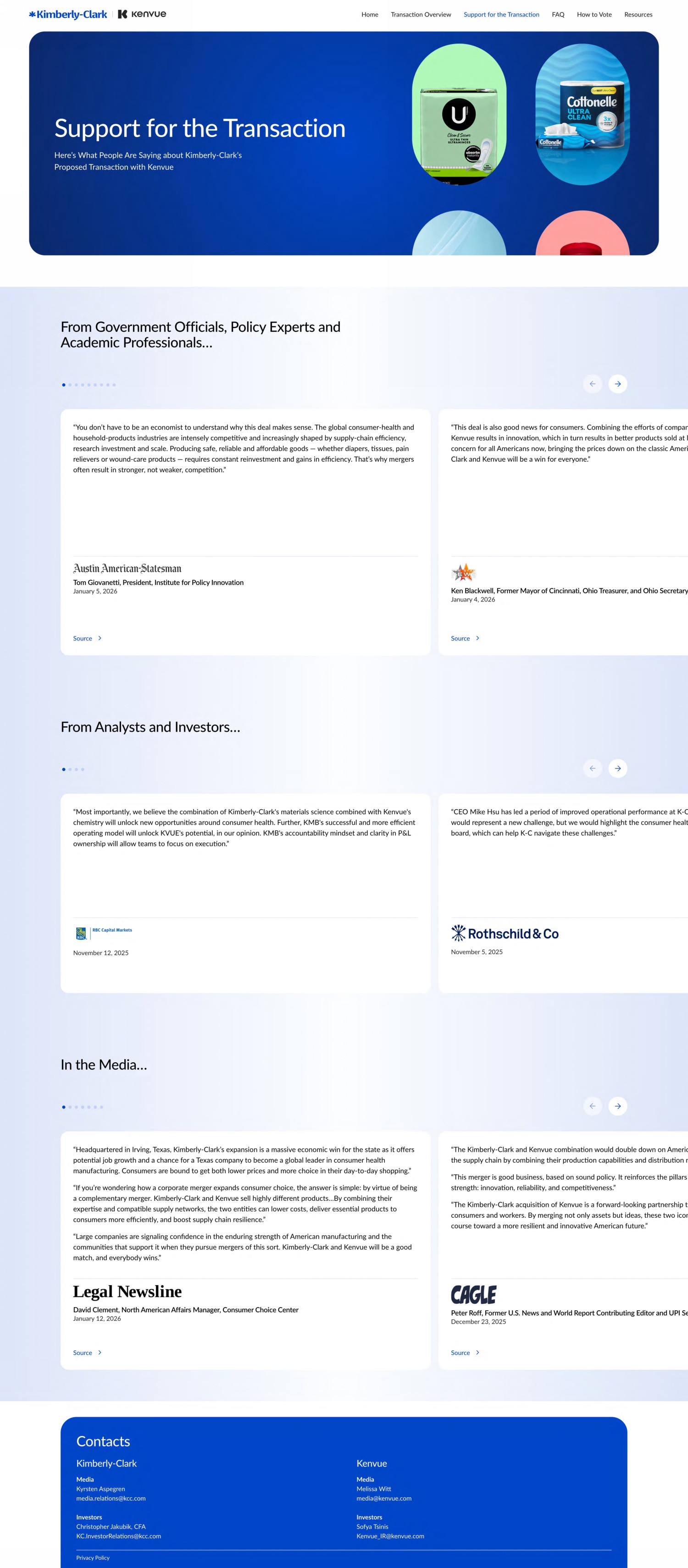 This communication may be deemed to be solicitation material in respect of the proposed transaction between Kimberly-Clark Corporation (“K-C”) and Kenvue Inc. (“Kenvue”). In connection therewith, on 12/4/2025, K-C and Kenvue filed with the Securities and Exchange Commission (the “SEC”) a K-C registration statement on Form S-4, as amended on 12/12/2025 (the “Form S-4”), in connection with the proposed issuance of shares of K-C’s common stock pursuant to the proposed transaction, which contains a joint proxy statement of K-C and Kenvue that also constitutes a prospectus of K-C. The registration statement was declared effective by the SEC on 12/16/2025 and K-C and Kenvue filed a prospectus and definitive proxy statement, respectively, and commenced mailing the definitive joint proxy statement/prospectus to their respective stockholders, on 12/16/2025, seeking their approval of their respective transaction-related proposals. INVESTORS AND STOCKHOLDERS OF K-C AND KENVUE ARE URGED TO READ CAREFULLY THE REGISTRATION STATEMENT AND THE DEFINITIVE JOINT PROXY STATEMENT/PROSPECTUS AS WELL AS ANY AMENDMENTS OR SUPPLEMENTS AND OTHER DOCUMENTS IN THEIR ENTIRETY FILED OR THAT WILL BE FILED WITH THE SEC BECAUSE THEY CONTAIN OR WILL CONTAIN IMPORTANT INFORMATION ABOUT THE PROPOSED TRANSACTION, THE PARTIES TO THE PROPOSED TRANSACTION AND ANY SOLICITATION. This communication is not a substitute for the registration statement, the definitive joint proxy statement/prospectus or any other document that K-C or Kenvue may file with the SEC and send to its stockholders in connection with the proposed transaction. Investors and stockholders may obtain free copies of the registration statement and the definitive joint proxy statement/prospectus and other documents filed with the SEC by K-C or Kenvue through the website maintained by the SEC at http://www.sec.gov. Copies of the documents filed with the SEC by K-C are available free of charge on K-C’s website at kimberly-clark.com under the tab “Investors” and under the heading “Financial” and subheading “SEC Filings.” Copies of the documents filed with the SEC by Kenvue are available free of charge on Kenvue’s website at kenvue.com under the tab “Investors” and under the heading “Financials & reports” and subheading “SEC filings.”