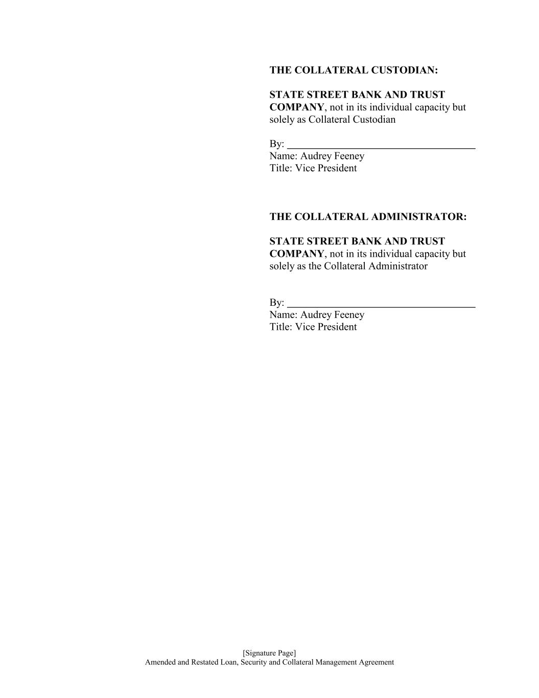 THE COLLATERAL CUSTODIAN: STATE STREET BANK AND TRUST COMPANY, not in its individual capacity but solely as Collateral Custodian By: Name: Audrey Feeney Title: Vice President THE COLLATERAL ADMINISTRATOR: STATE STREET BANK AND TRUST COMPANY, not in its individual capacity but solely as the Collateral Administrator By: Name: Audrey Feeney Title: Vice President [Signature Page] Amended and Restated Loan, Security and Collateral Management Agreement