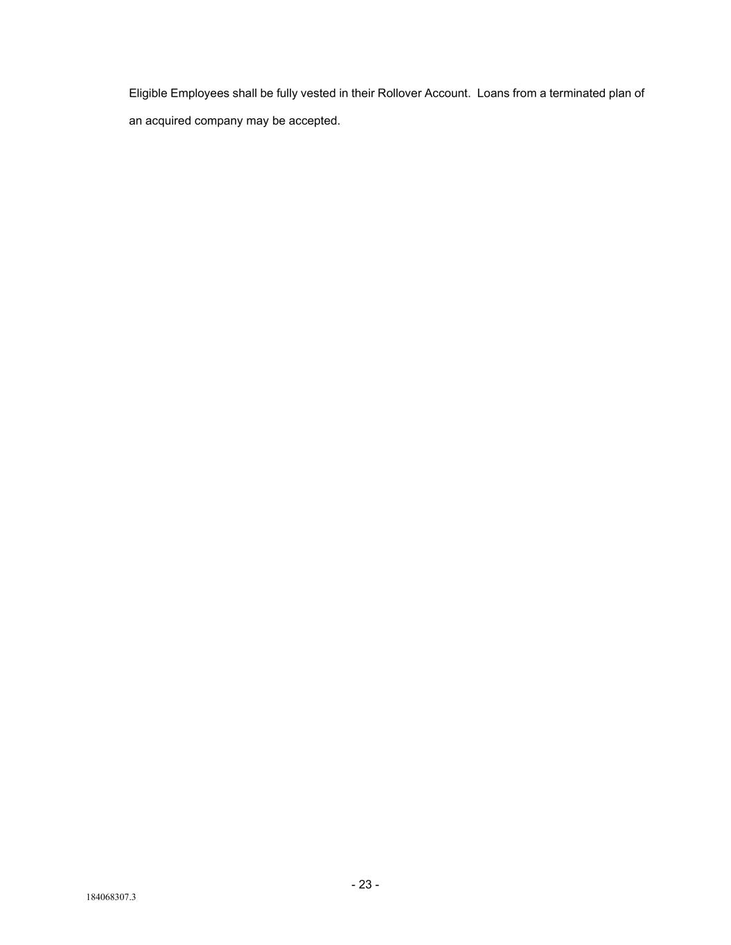 - 23 - 184068307.3 Eligible Employees shall be fully vested in their Rollover Account. Loans from a terminated plan of an acquired company may be accepted.