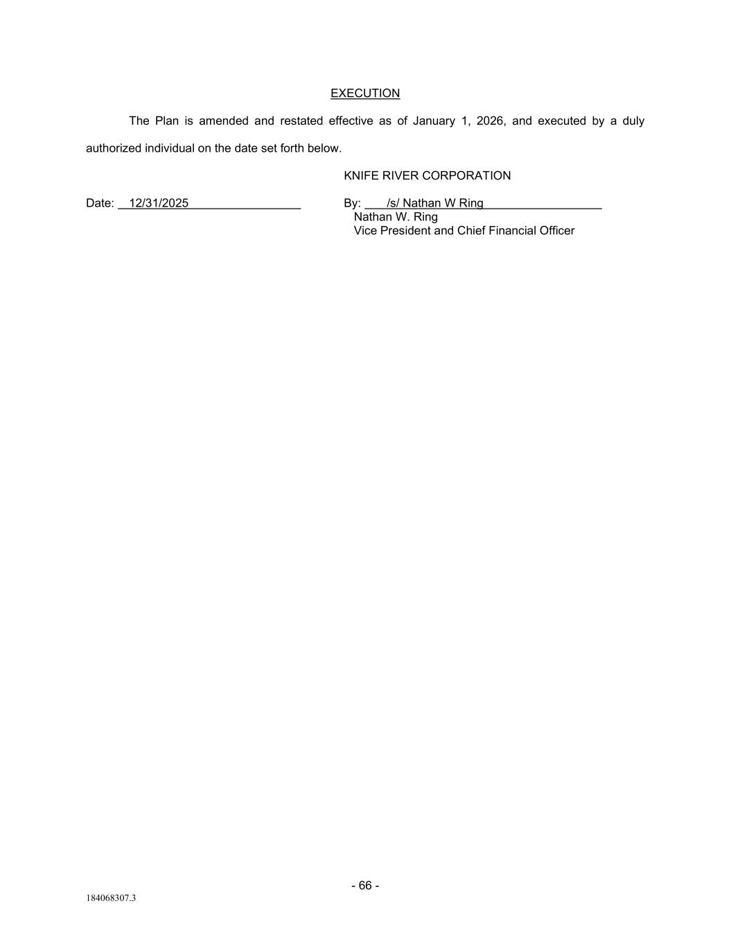 - 66 - 184068307.3 EXECUTION The Plan is amended and restated effective as of January 1, 2026, and executed by a duly authorized individual on the date set forth below. KNIFE RIVER CORPORATION Date: 12/31/2025 By: /s/ Nathan W Ring Nathan W. Ring Vice President and Chief Financial Officer