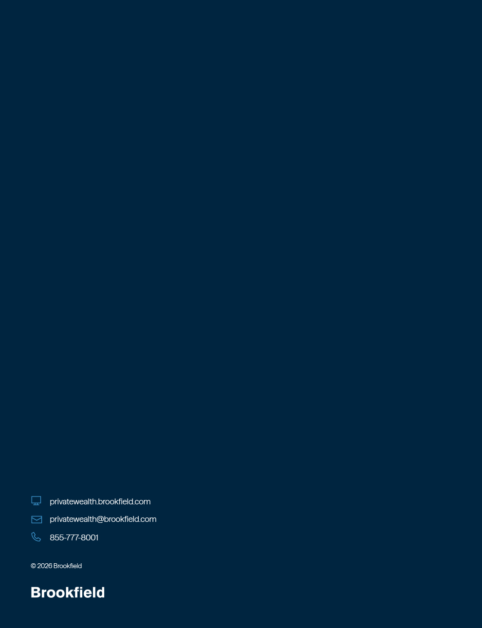 We welcome your questions and comments and encourage you to contact our Investor Relations team at (855) 777-8001 or visit us at www.privatewealth.brookfield.com for more information. Thank you for your support.
