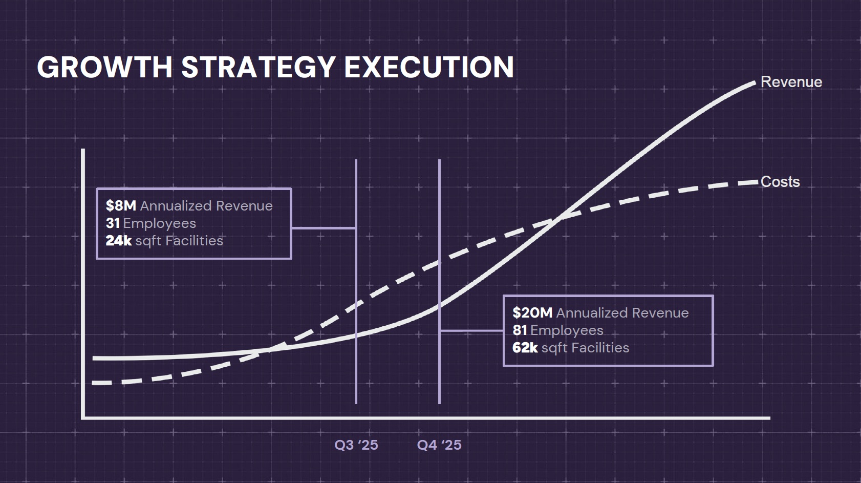 Q4 ‘25 Revenue Costs $20M Annualized Revenue 81 Employees 62k sqft Facilities $8M Annualized Revenue 31 Employees 24k sqft Facilities Q3 ‘25 GROWTH STRATEGY EXECUTION