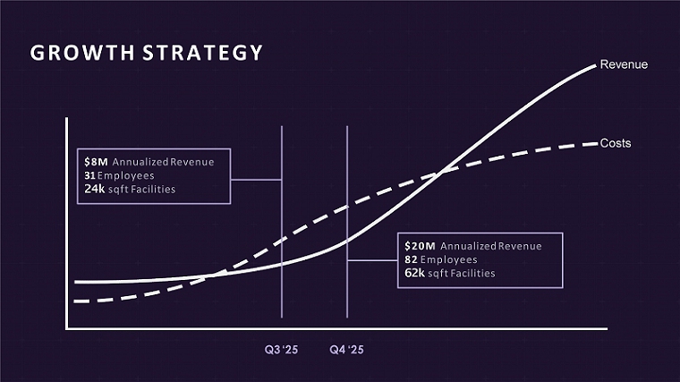 Q4 ‘25 Re v enue Costs $20M Annualized Revenue 82 Employees 62k sqft Facilities $8M Annualized Revenue 31 Employees 24k sqft Facilities Q3 ‘25 GROWTH STRATEGY