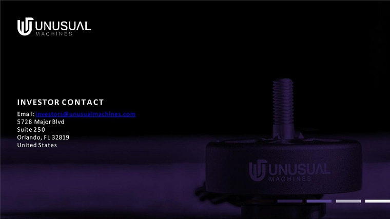 INVESTOR CONTACT Email: investors@unusualmachines.com 5728 Major Blvd Suite 250 Orlando, FL 32819 United States