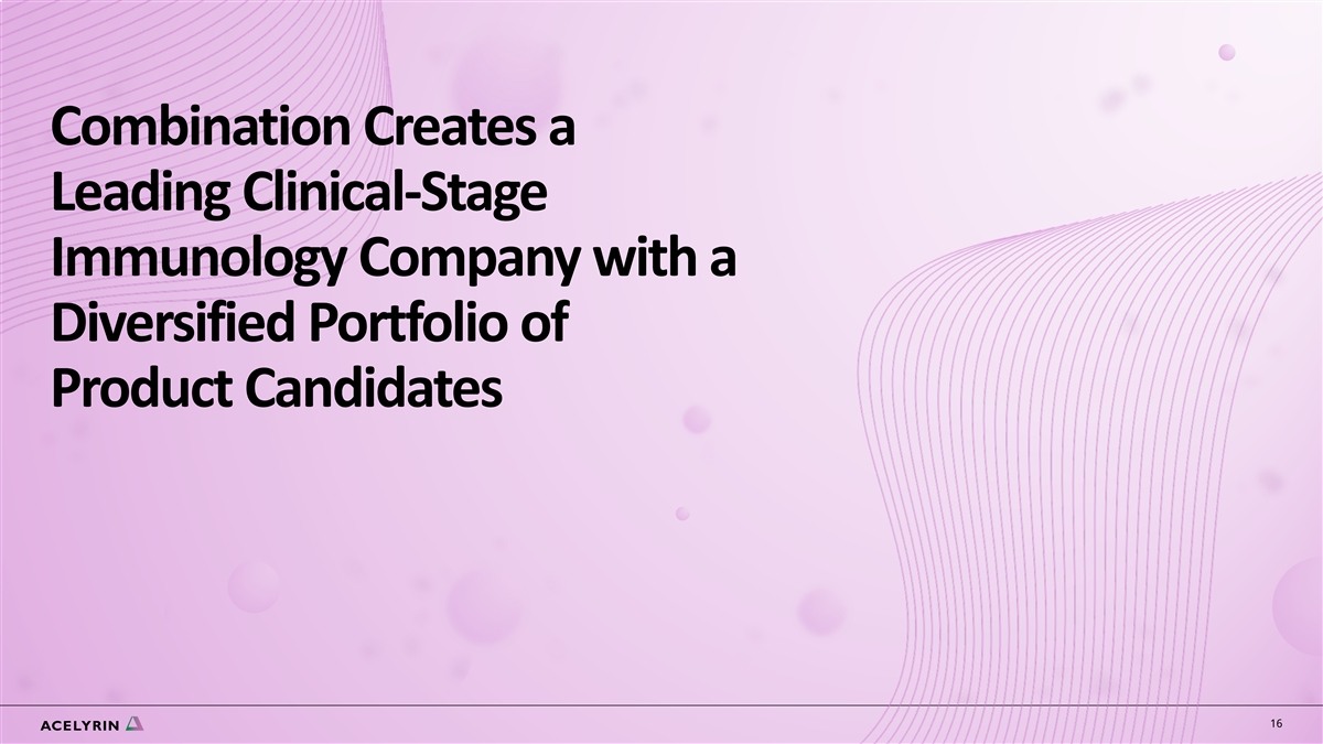 Combination Creates a Leading Clinical-Stage Immunology Company with a Diversified Portfolio of Product Candidates 16