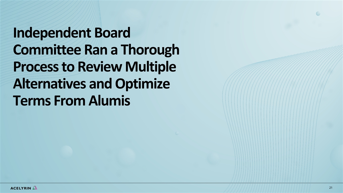 Independent Board Committee Ran a Thorough Process to Review Multiple Alternatives and Optimize Terms From Alumis 21