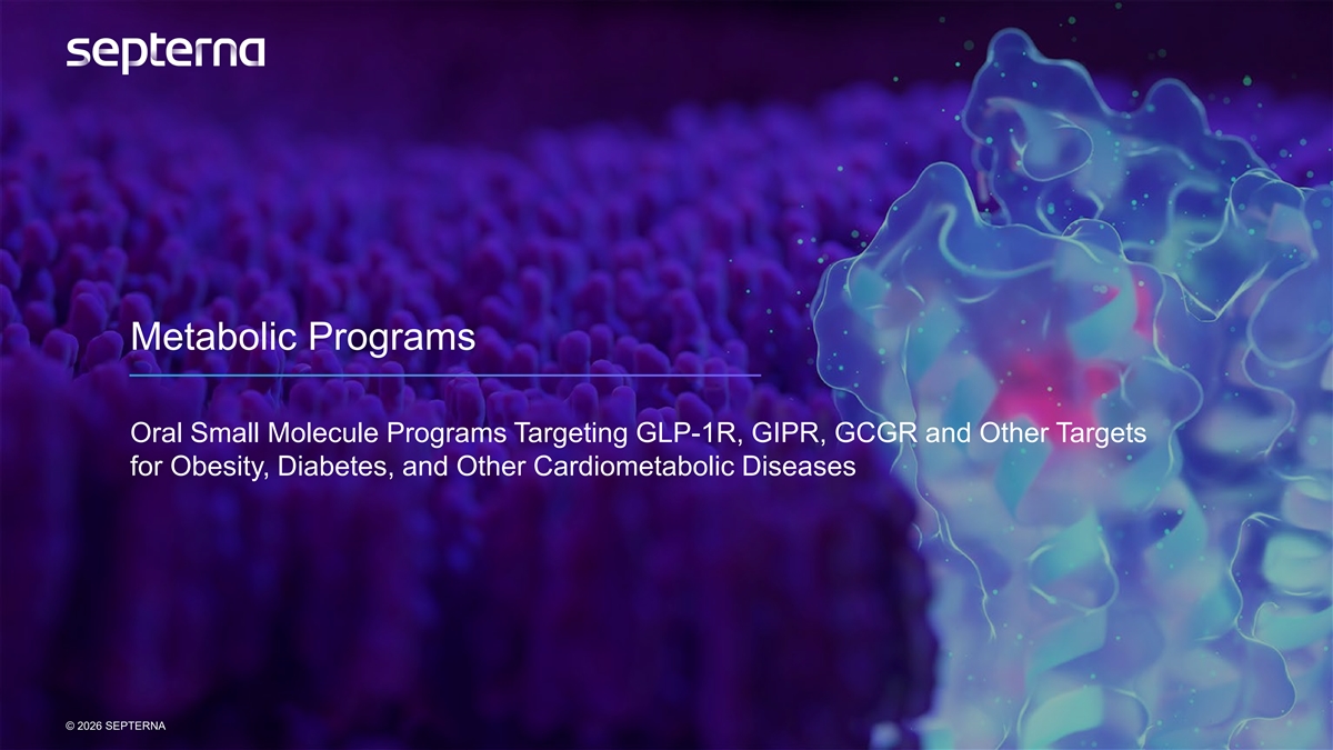 Metabolic Programs Oral Small Molecule Programs Targeting GLP-1R, GIPR, GCGR and Other Targets for Obesity, Diabetes, and Other Cardiometabolic Diseases © 2026 SEPTERNA