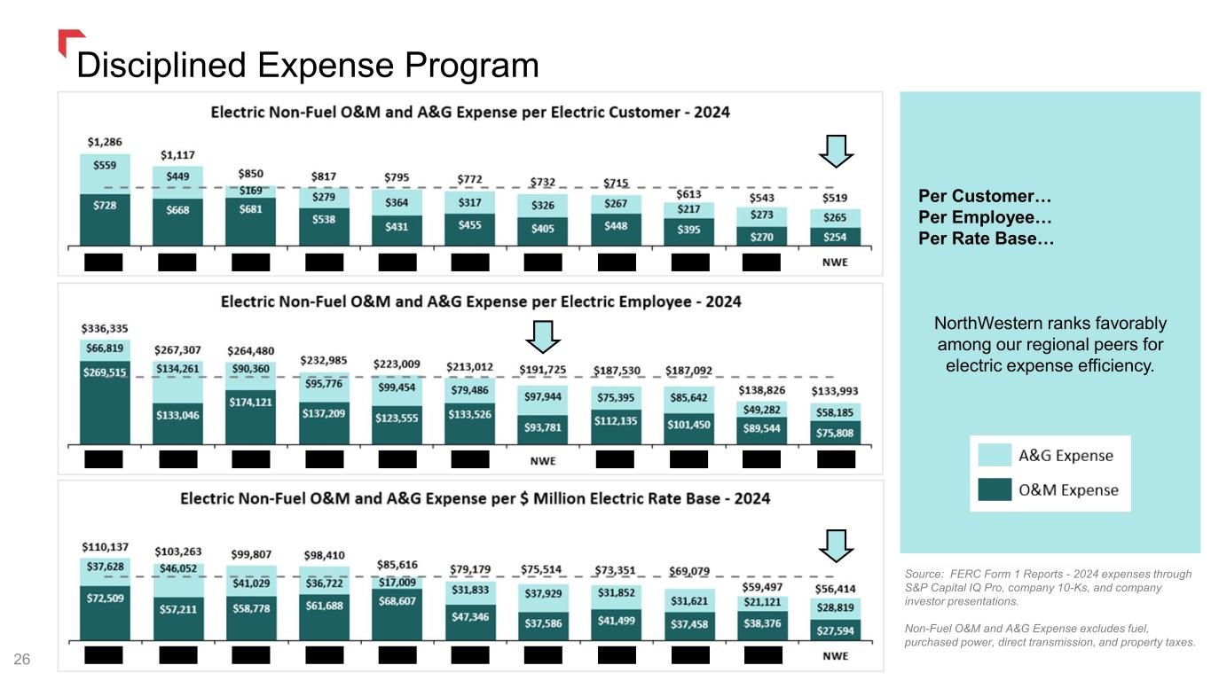 26 Disciplined Expense Program Per Customer… Per Employee… Per Rate Base… NorthWestern ranks favorably among our regional peers for electric expense efficiency. Source: FERC Form 1 Reports - 2024 expenses through S&P Capital IQ Pro, company 10-Ks, and company investor presentations. Non-Fuel O&M and A&G Expense excludes fuel, purchased power, direct transmission, and property taxes.