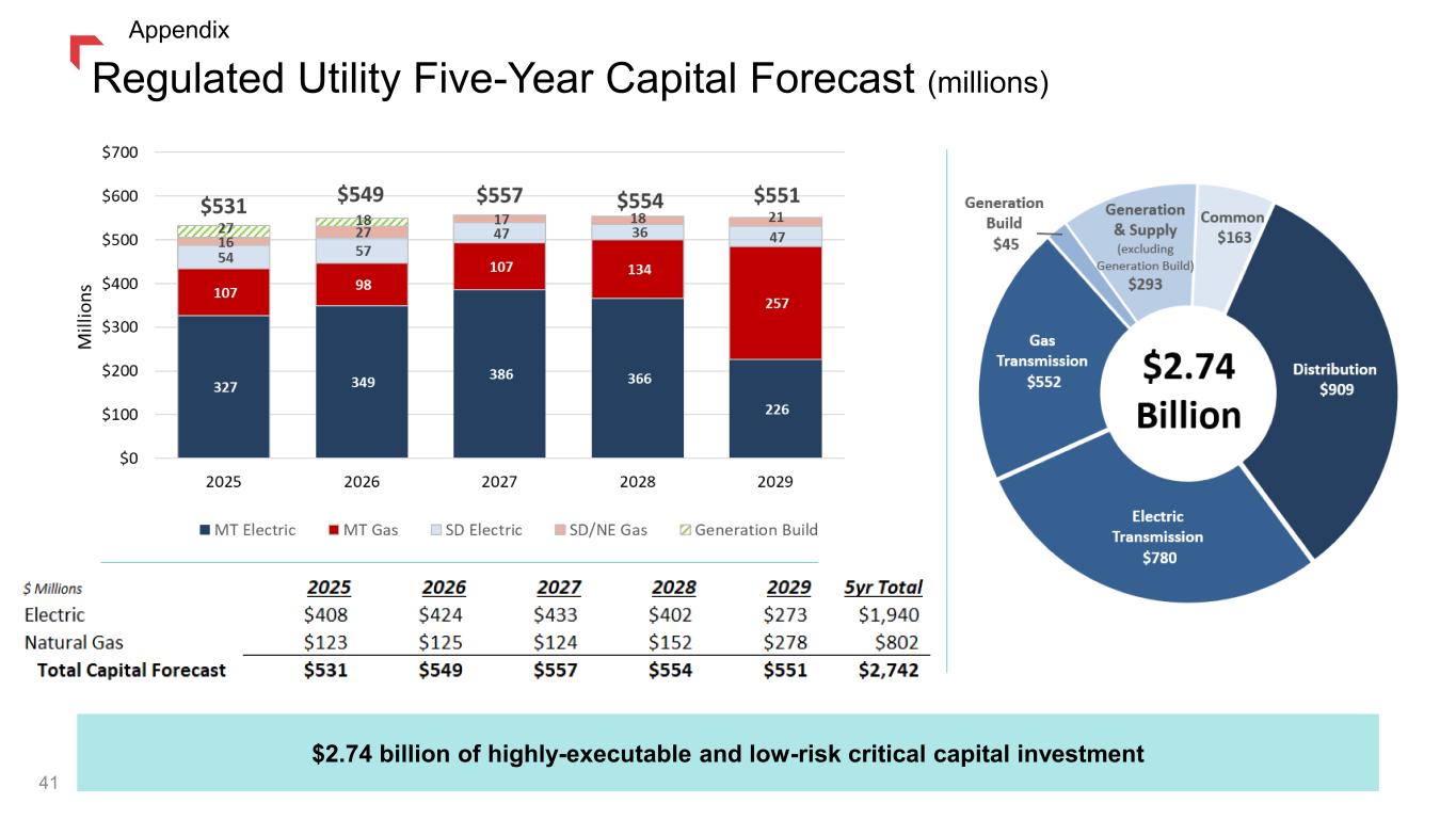 $2.74 billion of highly-executable and low-risk critical capital investment Regulated Utility Five-Year Capital Forecast (millions) 41 Appendix