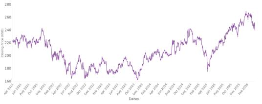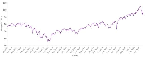 The following graph sets forth the historical performance of the EFA based on the daily historical closing prices from March 31, 2021 through March 31, 2026. We obtained the closing prices below from Bloomberg L.P. (“Bloomberg”). We have not undertaken any independent review of, or made any due diligence inquiry with respect to, the information obtained from Bloomberg.