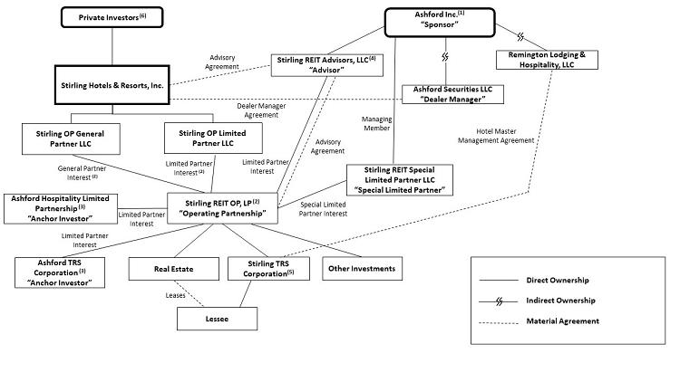 The Company was organized to invest primarily in a diverse portfolio of stabilized income-producing hotels and resorts across all chain scales primarily located in the United States and operated under widely recognized brands. The Company and Stirling OP is externally managed by Stirling REIT Advisors LLC (the “Advisor”), an affiliate of Ashford Inc. (“Ashford”), the Company’s sponsor.