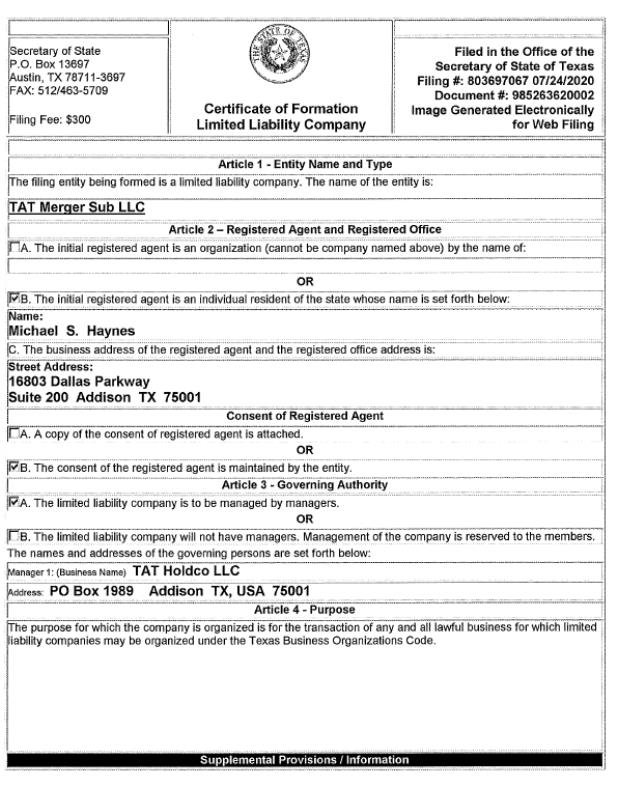 EX-99.1Completing Asset Acquisition or Sale, Notice of Delisting or Failure to Satisfy a Continued Listing Rule or Standard; Transfer of Listing, Material Modifications to Rights of Security Holders, Change in Company Ownership, Changes in Board, Management or Compensation, Amendments to Articles of Incorporation or Bylaws, Shareholder votes