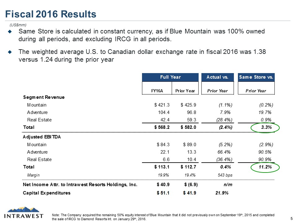 INTRAWEST RESORTS HOLDINGS, INC 8-K 9-8-2016