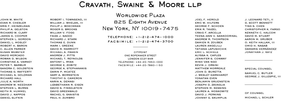 OPINION OF CRAVATH, SWAINE & MOORE LLP