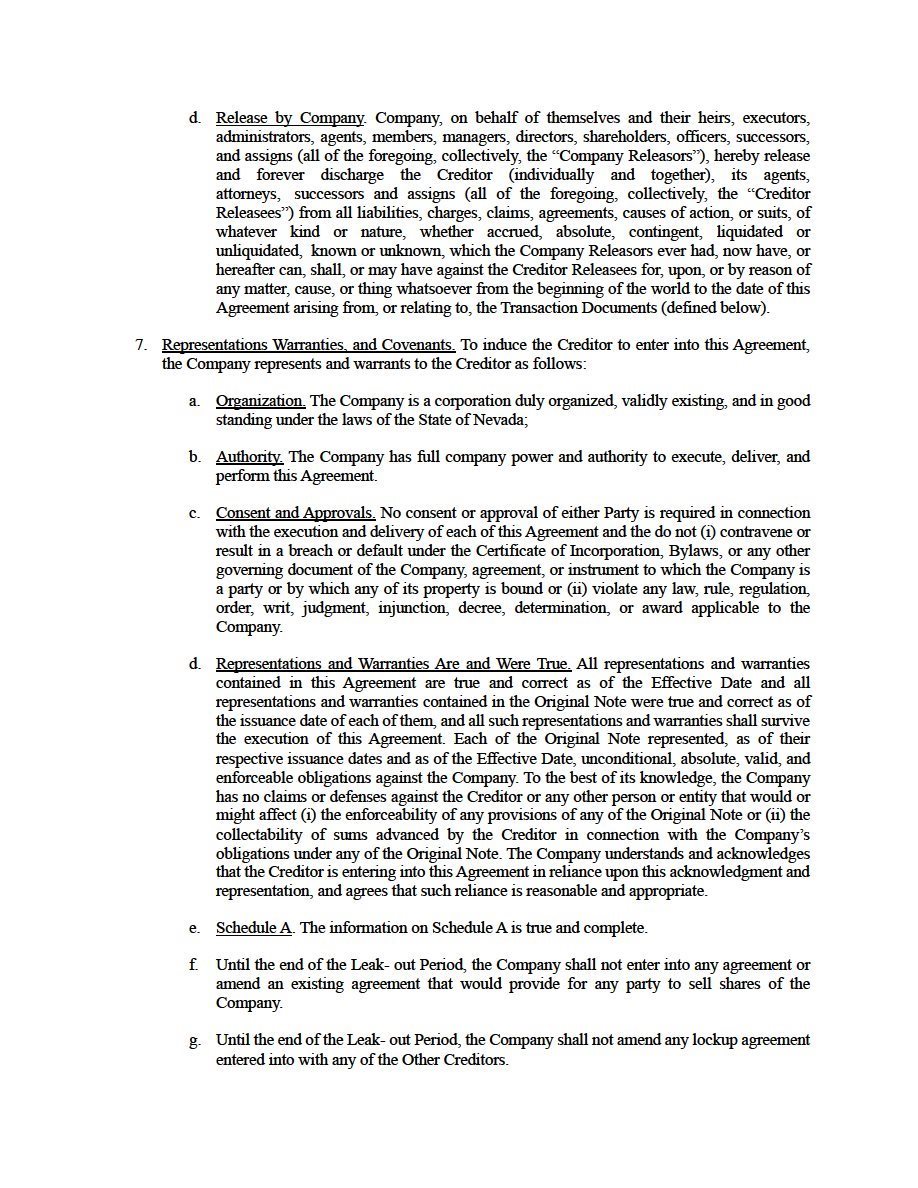AMENDMENT TO LOCK-UP AND LEAK-OUT AGREEMENT