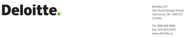 CONSENT OF DELOITTE LLP CHARTERED PROFESSIONAL ACCOUNTANTS