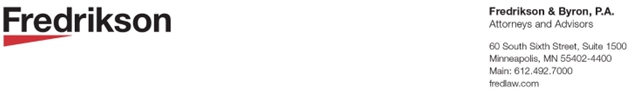 OPINION OF FREDRIKSON & BYRON, P.A.