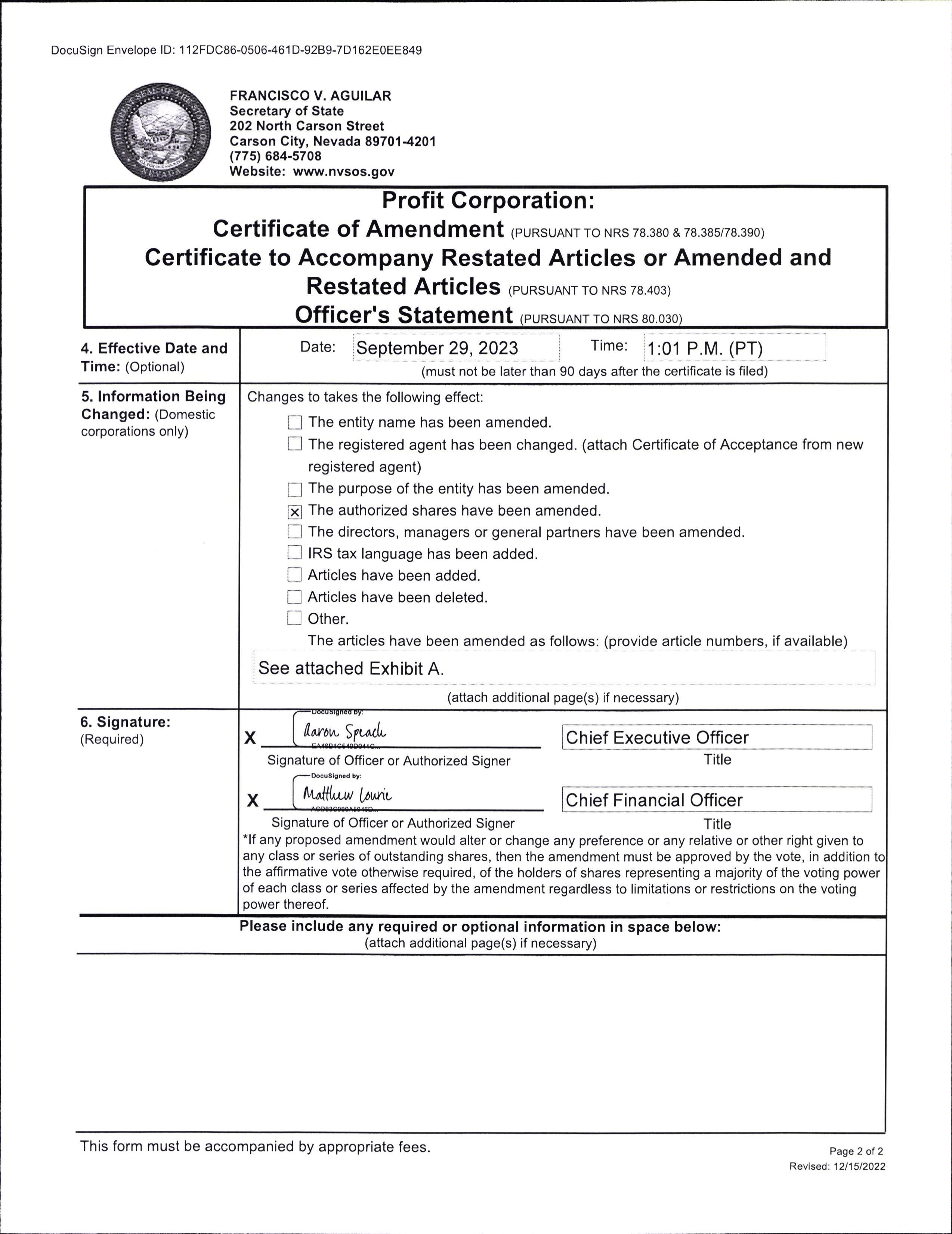 AMENDMENT TO EBET, INC. ARTICLES OF INCORPORATION