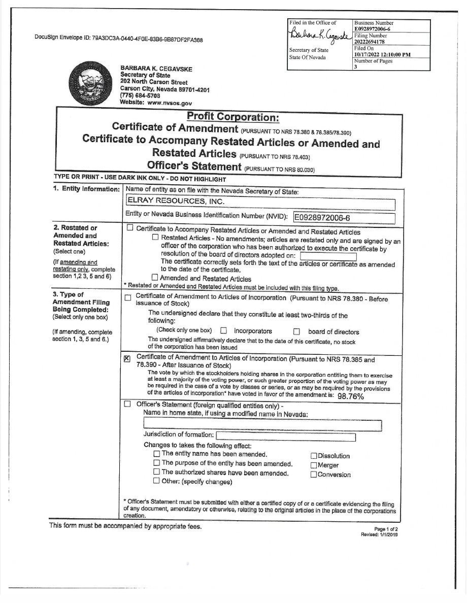 Elray Resources, Inc.