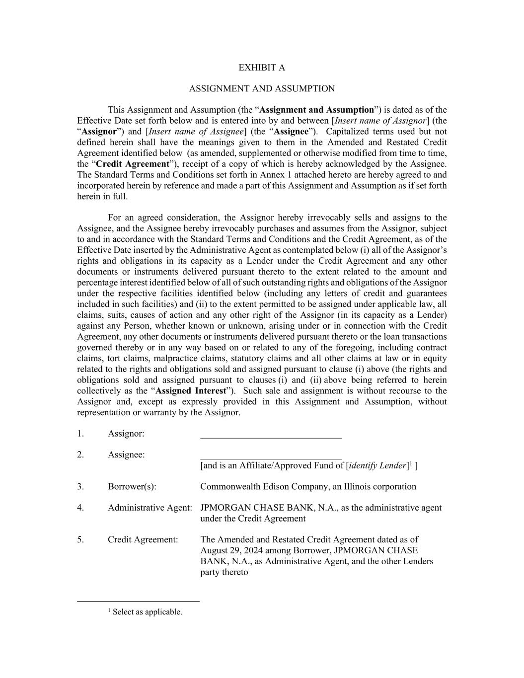 AMENDED AND RESTATED CREDIT AGREEMENT OF COMMONWEALTH EDISON COMPANY
