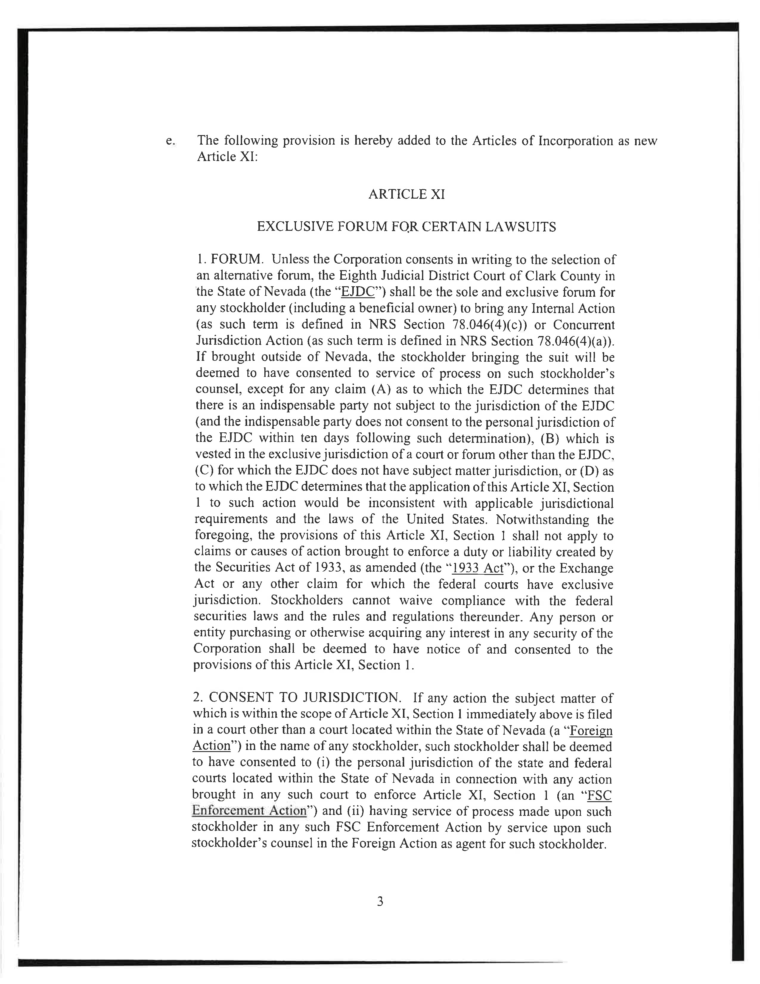 Amendments to Articles of Incorporation or Bylaws, Reg. FD