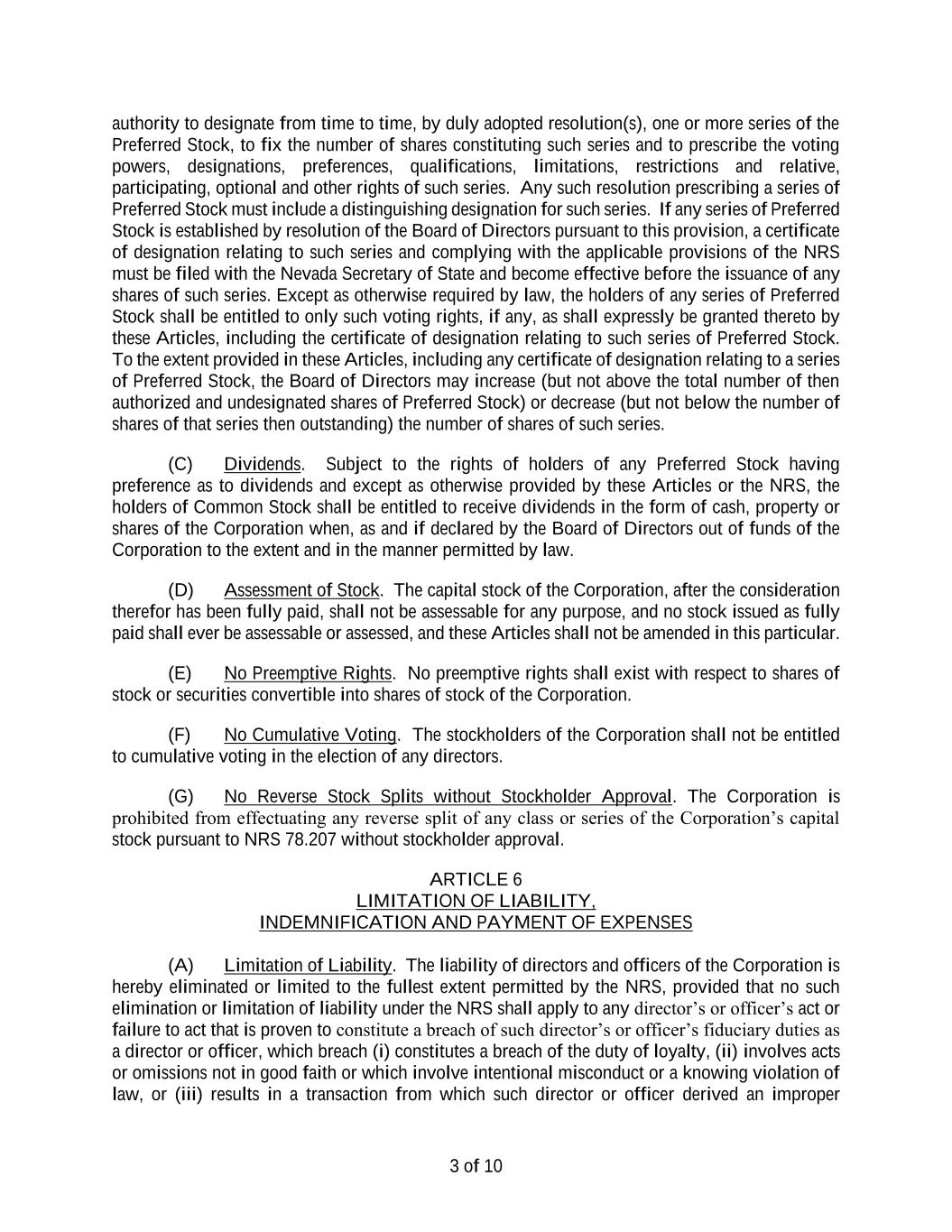 8-KMaterial Modifications to Rights of Security Holders, Amendments to Articles of Incorporation or Bylaws, Shareholder votes