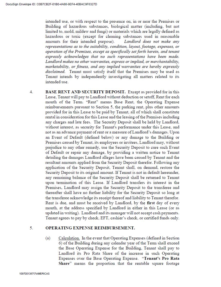 LEASE BETWEEN DATED SEPTEMBER 29, 2023 BY AND BETWEEN REGISTRANT AND JBA PORTFOLIO, LLC