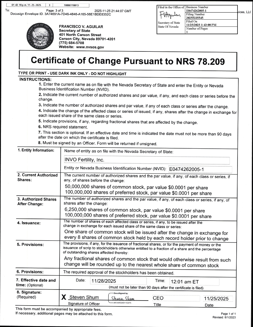 EX-99.1Amendments to Articles of Incorporation or Bylaws, Other Events