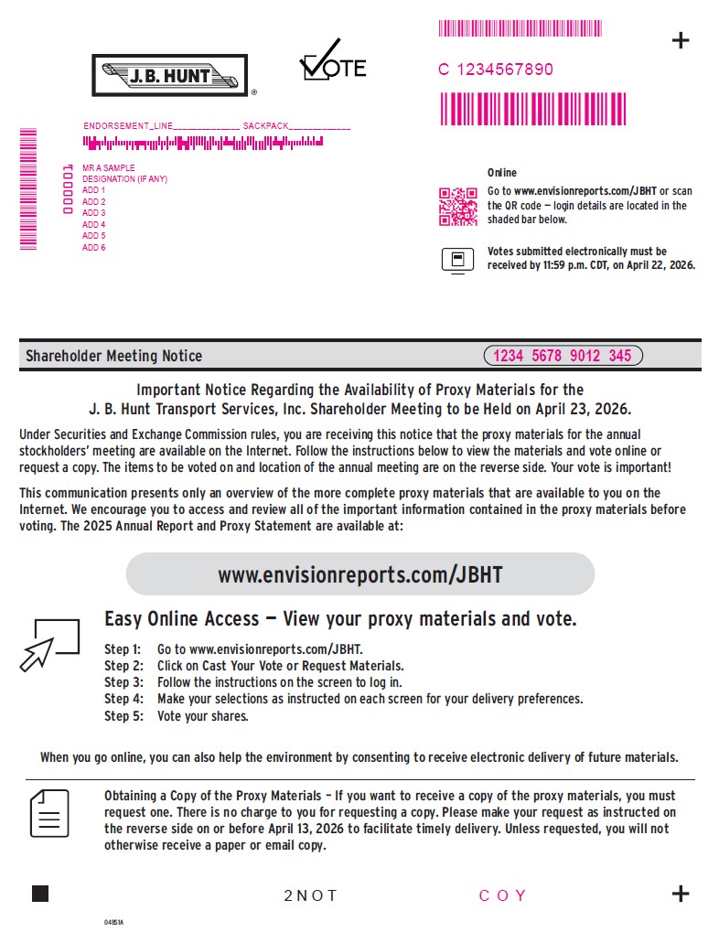 Hunt JB Transport Services Inc