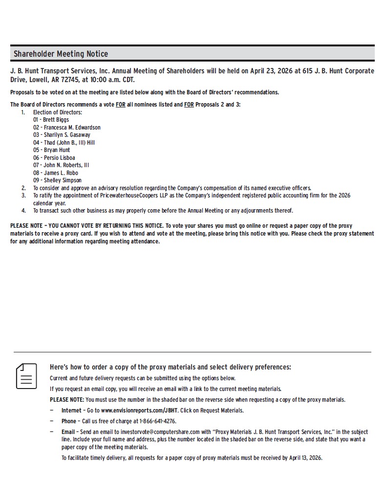 Hunt JB Transport Services Inc