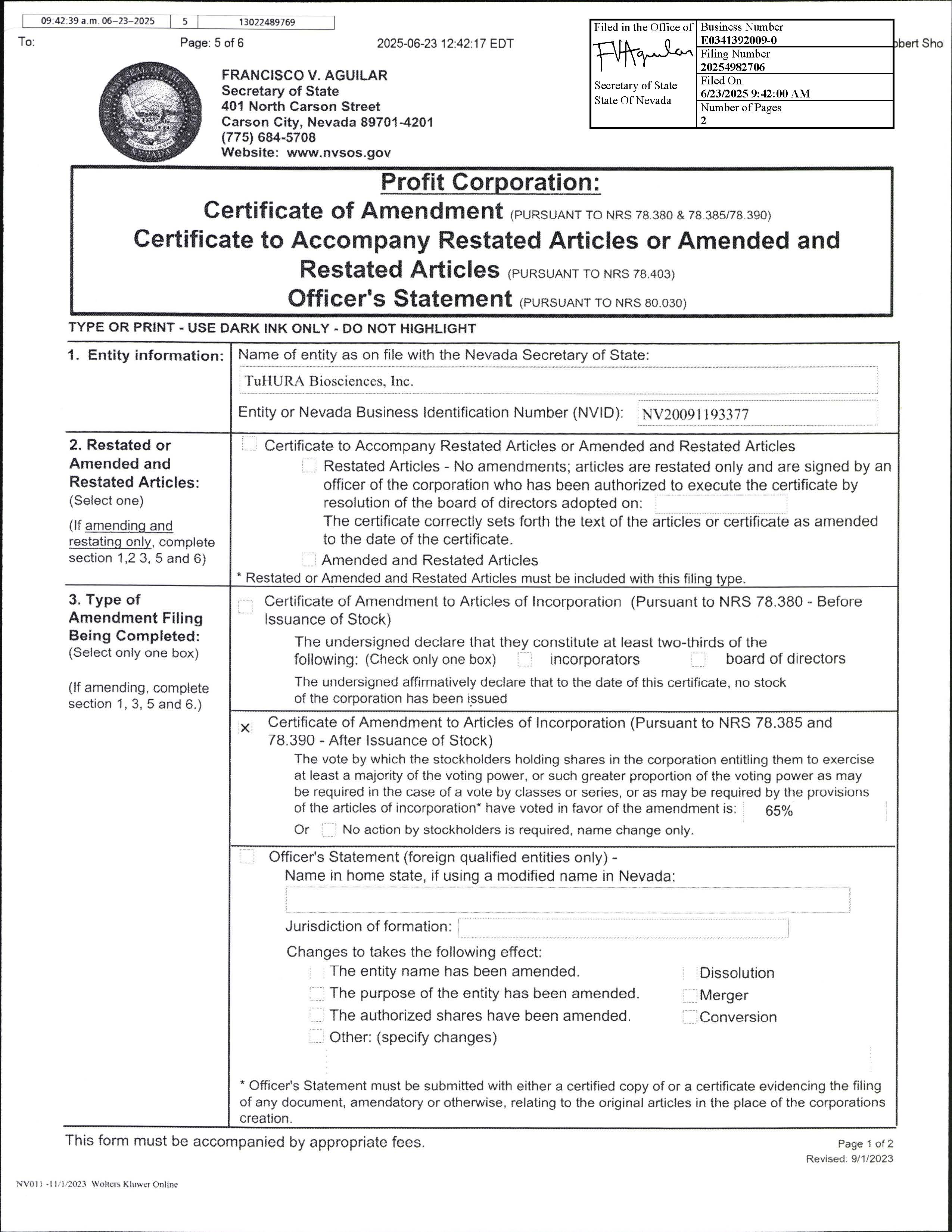8-KAmendments to Articles of Incorporation or Bylaws