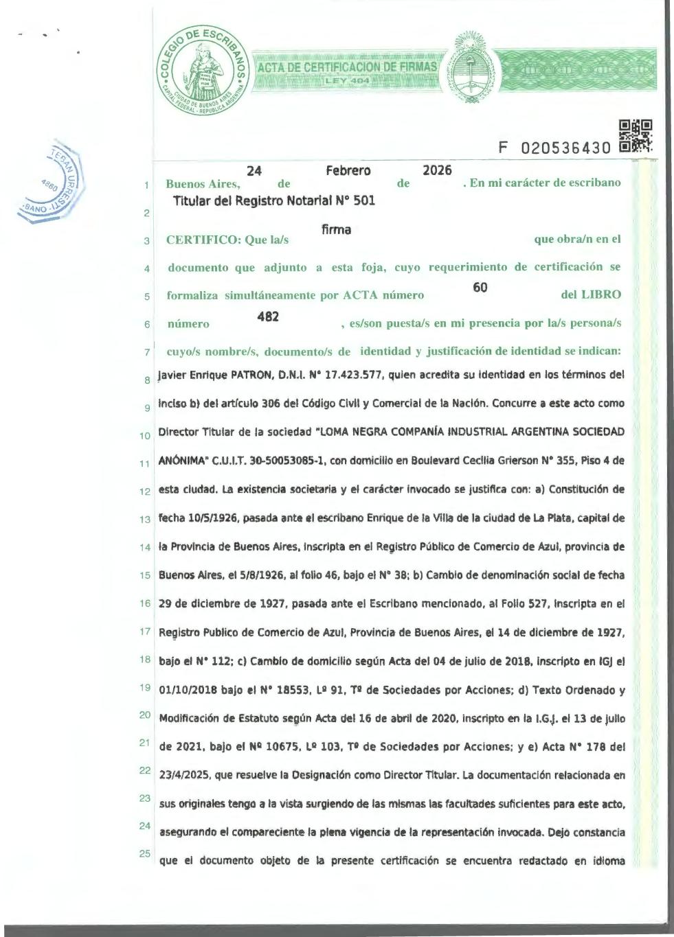 Loma Negra Compañía Industrial Argentina Sociedad Anónima